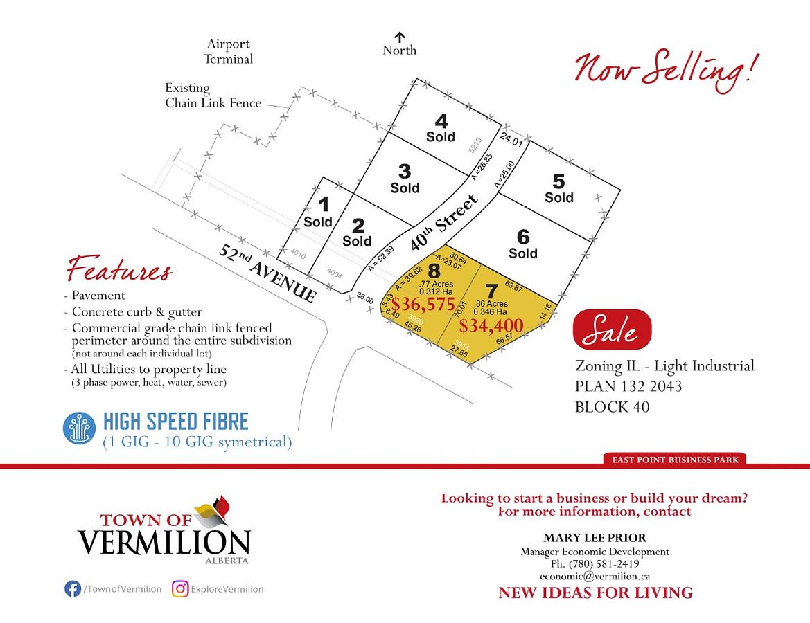 Vermilion has the Vermilion Health Centre, 2 rail terminals, and convenient access to Highway 41, which is a high load corridor.