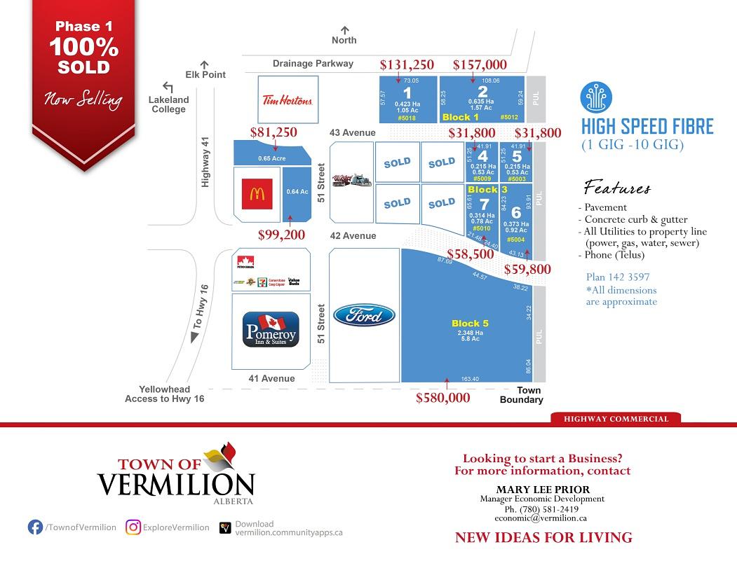 Vermilion has the Vermilion Health Centre, 2 rail terminals, and convenient access to Highway 41, which is a high load corridor.